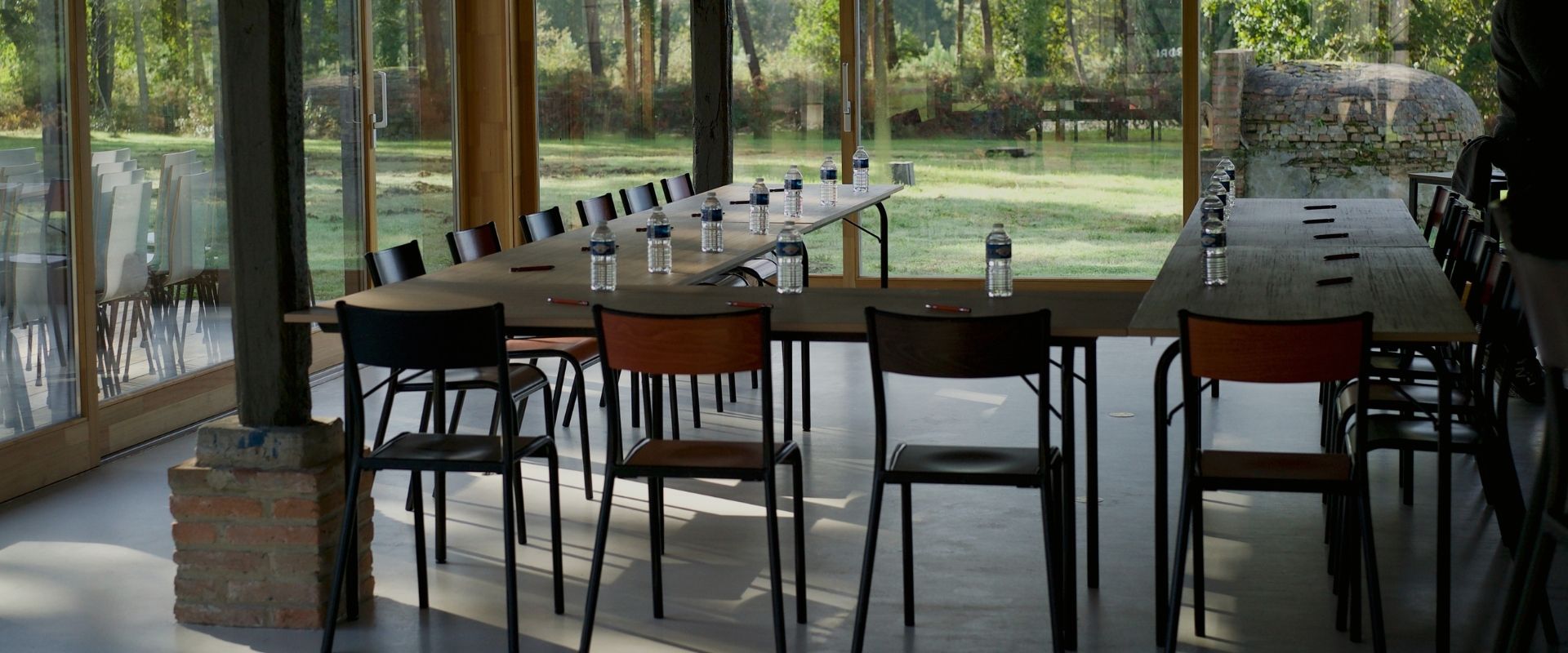 Une belle et grande salle de réunion climatisée inondée de lumière. C’est un 180° de baies coulissantes ouvrant sur la pleine nature et le parc ombragé de La Canopée des Landes. Un véritable éveil des sens à la campagne, où l’intimité nécessaire à la réussite de votre réunion est préservée.